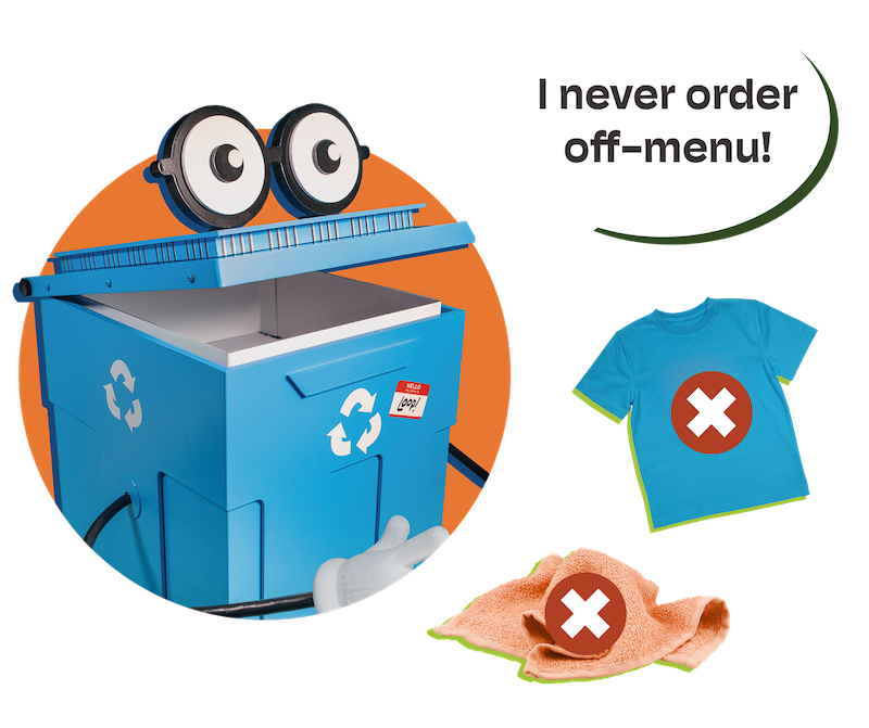 Uh-oh. I love eating your recyclables, but yard and food waste give me a stomachache.